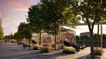 Пространство оснастят пешеходной зоной, а также вело‑ и беговыми дорожками.