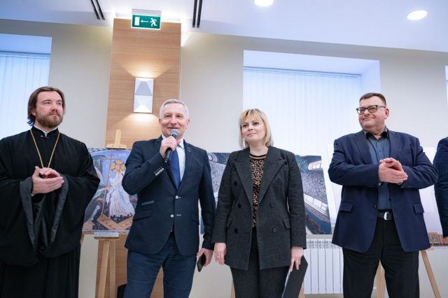 В холле Министерства просвещения РФ состоялось торжественное открытие выставки храмовой росписи «Образ и время». С приветственным словом на мероприятии выступил протоиерей Илия Кочуров — настоятель храма святителя Спиридона Тримифунтского в Фили‑Давыдково и заместитель председателя комиссии по работе с вузами при Епархиальном совете Московской епархии.