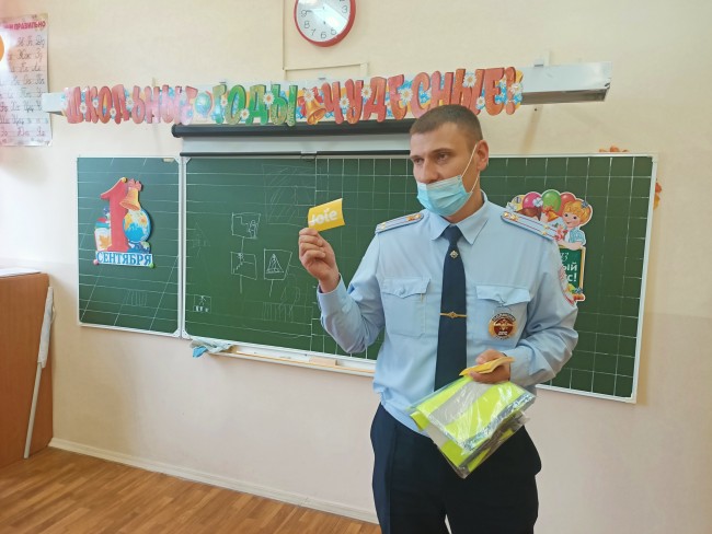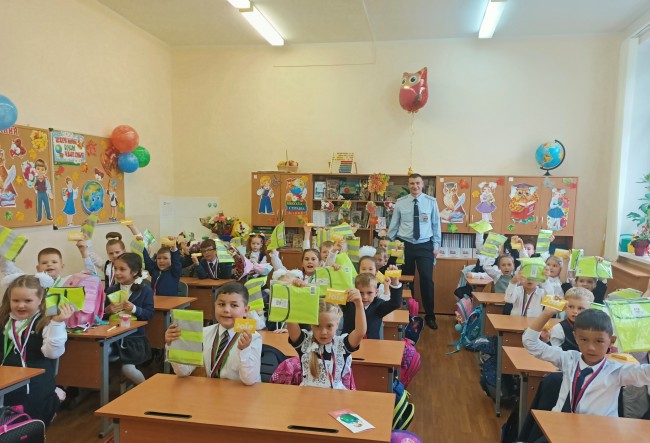 Школьникам подарили светоотражающие элементы для рюкзаков и светоотражающие жилеты. Александр Парадо рассказал для чего нужны световозвращающие элементы и как необходимо прикреплять их к верхней одежде, рюкзакам, сумкам, так, чтобы при переходе через проезжую часть на них попадал свет фар автомобилей и они всегда были видны водителю. Также посоветовал использовать светоотражающие жилеты при проведении городских экскурсий, выходов в город для участия в различных мероприятиях, выездов на природу и при проведении соревнований.